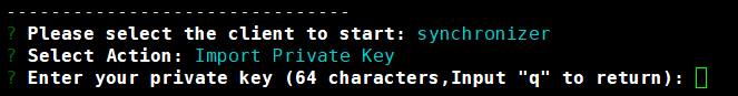Synchronizer/Validator -> Import Private Key